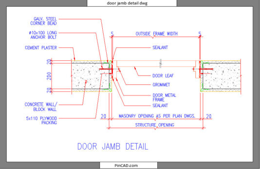 Door Jamb Detail DWG – Concrete Block & Frame Details for CAD Drawings