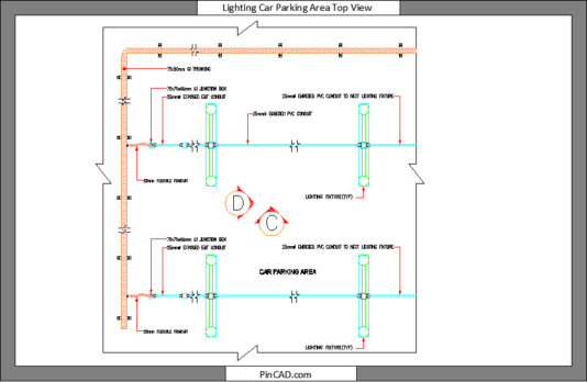 The lighting car parking area top view is an essential CAD block for any architect, designer, or student involved in urban planning, commercial spaces, or residential site layouts. Proper lighting not only enhances visibility and safety in parking areas but also ensures compliance with modern design standards and building codes.