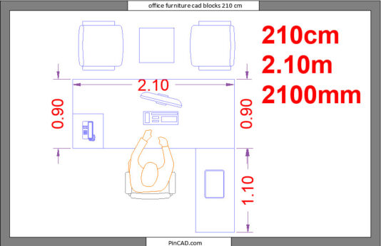 This highly detailed CAD block includes multi-view drawings, making it easy to integrate into architectural and interior design projects. The 210cm table is best suited for conference rooms, shared workspaces, and large office layouts.