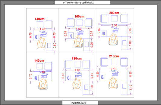 Office Furniture CAD Blocks – Free DWG Download (140cm, 160cm, 180cm, 200cm, 210cm)